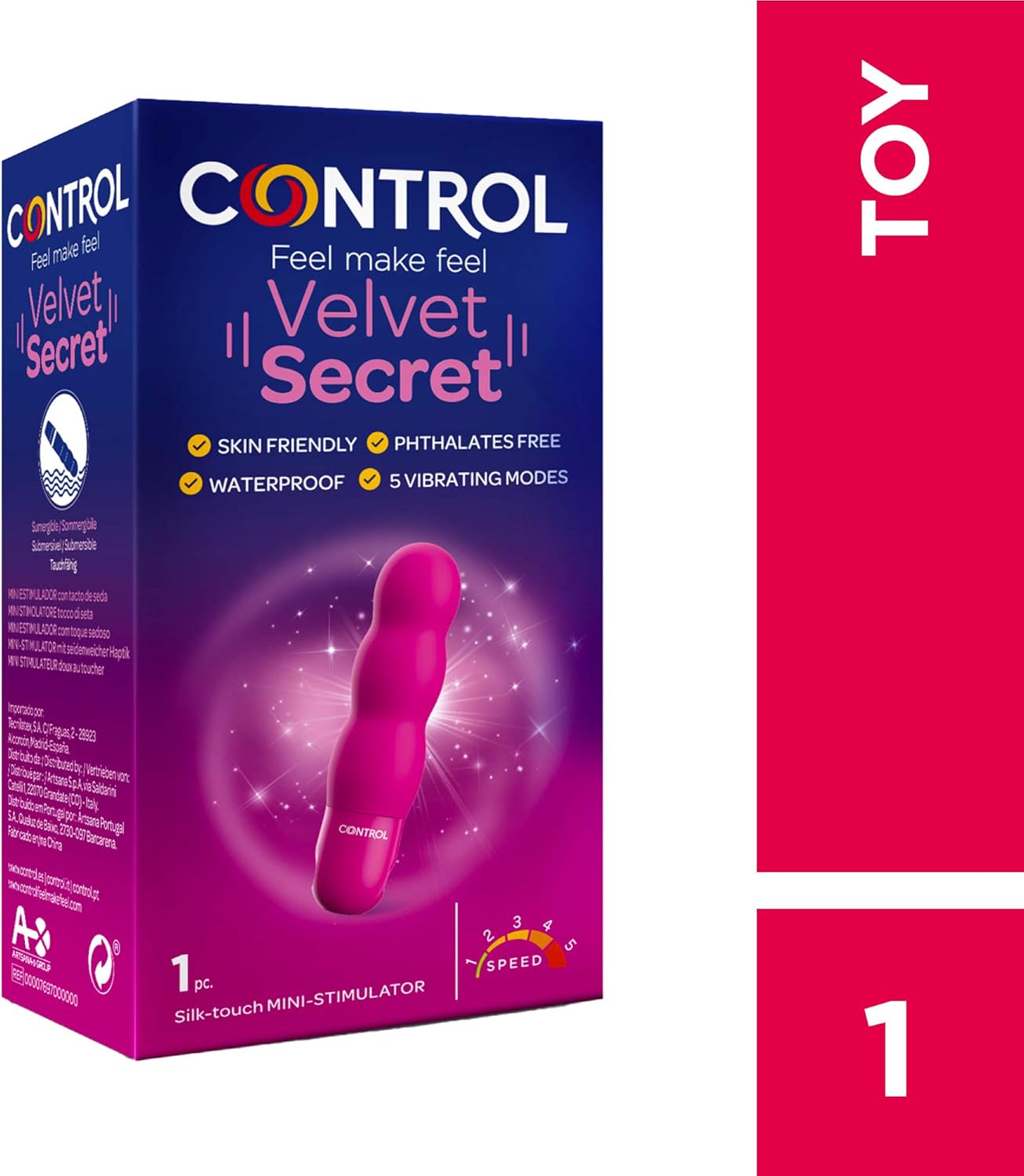 Passion vibrante. Secret Velvet mini Control 4 4 estimulador. Un, sous un design innovant et ergonomique.