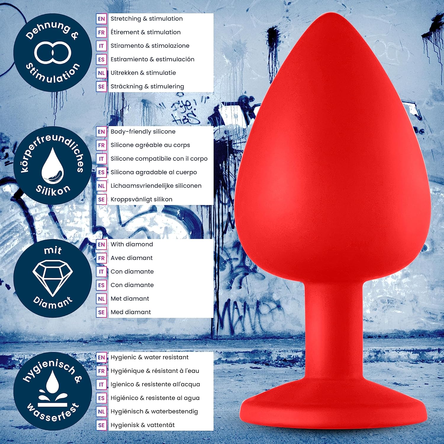 PLUG ANALE EXTREME XXL : grand diamètre 44 mm, longueur totale 9,4 cm de large, 82 g lourd, idéal pour expert, plug anal en silicone avec crystal