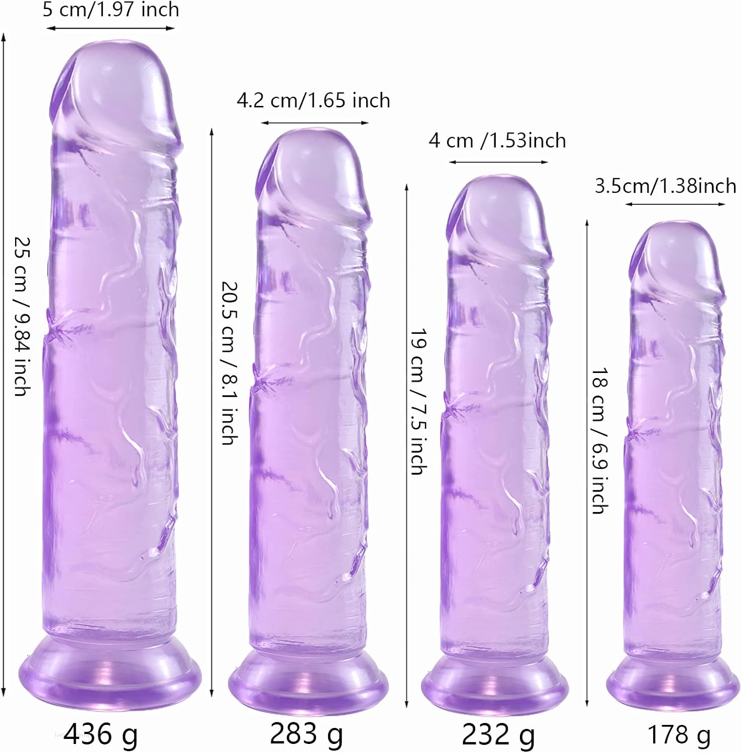 4 tailles Convient aux débutants et avancés: ce gode réaliste en cristal violet propose 4 tailles adaptées aux débutants et aux joueurs avancés de jouets sexuels.Vous pouvez choisir le gode de petite ou de plus grande taille qui convient à vos besoins