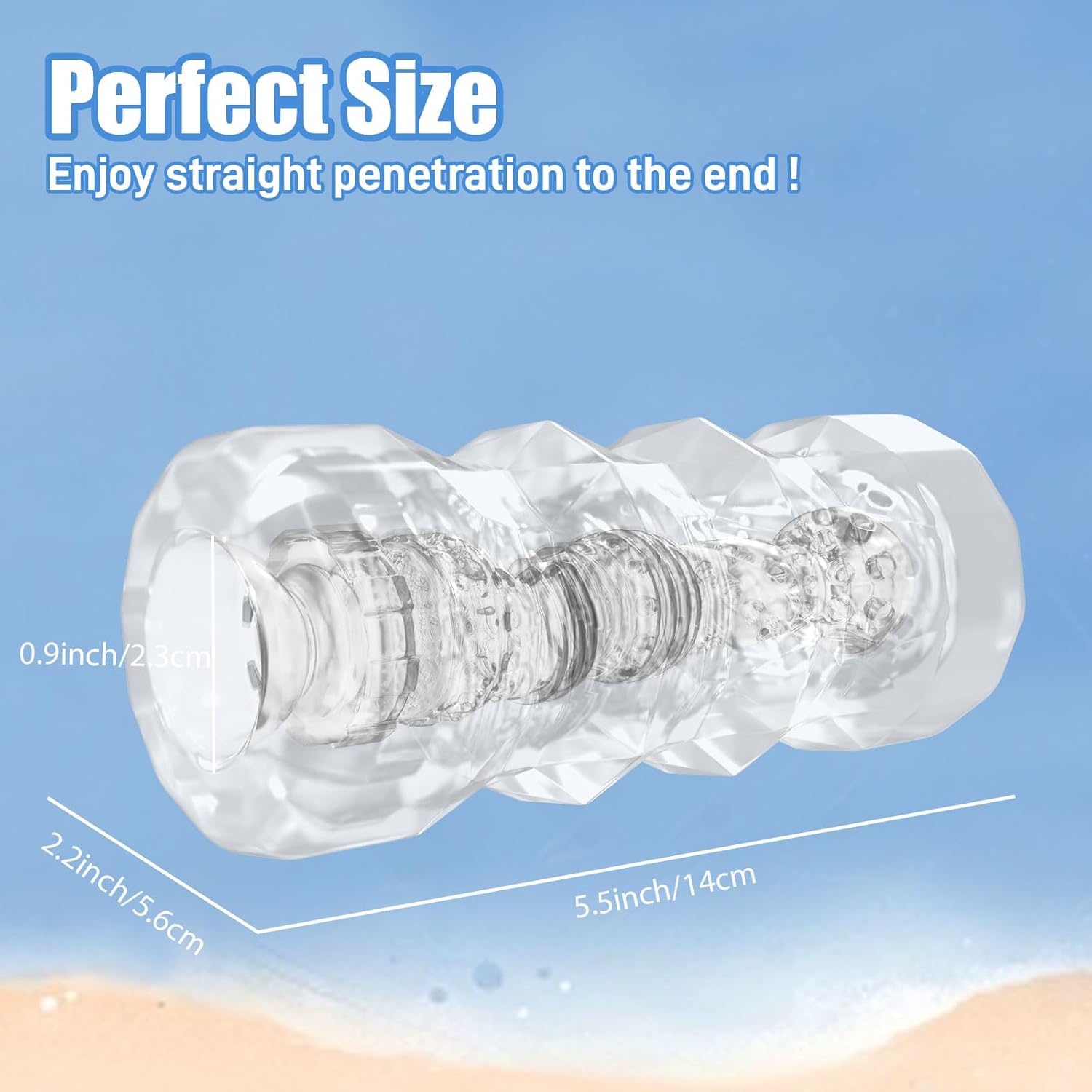 【Design Découpe Diamant & Taille Parfaite】Taille : 14 x 5,5 cm. Longueur insérable : 13 cm. L’entrée extensible permet non seulement une insertion facile, mais augmente également la sensation de succion à mesure que vous allez plus profondément. L’extérieur à découpe diamant offre une prise en main plus confortable. Son poids léger de 0,21 kg vous permet de vous plonger entièrement dans le plaisir de la masturbation sans vous sentir fatigué.