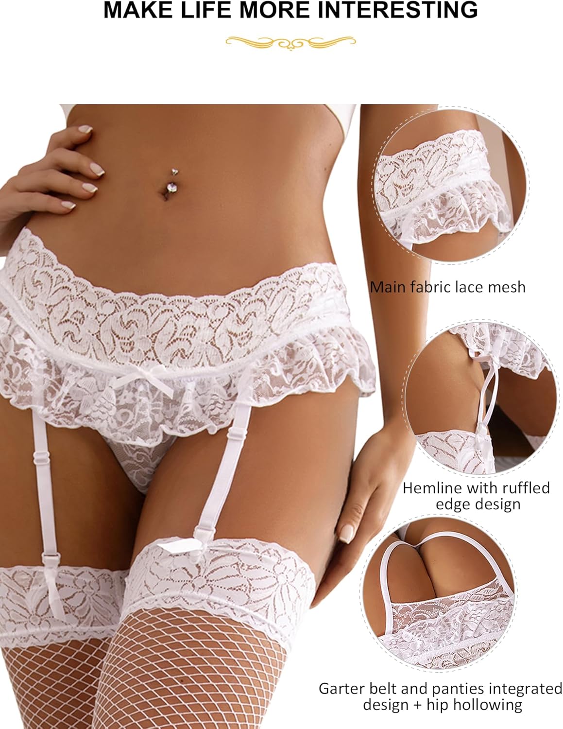 Notre porte-jarretelles pour femmes est une pièce unique avec une culotte et des découpes au niveau des hanches pour une personnalité unique. Les bas ne sont pas inclus et doivent être achetés séparément.
