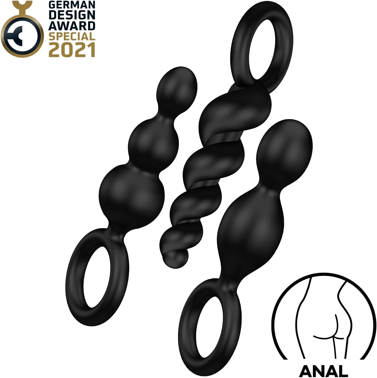 Un, deux ou trois ? Lorsque la porte dérobée attend des jeux de massage sensuels et réconfortants, ce délicieux trio est le compagnon idéal pour ta prochaine aventure anale. Les bouchons flexibles en silicone médical te gâtent avec une surface Soft Touch flatteuse et sont également parfaits pour les débutants et les explorateurs grâce à leurs pointes minces et leur texture lisse et particulièrement douce. Tu as le choix entre un design en spirale torsadée séduisant, une forme conique étroite et une structure classique à billes ascendante. L’ensemble polyvalent offre des expériences sensuelles variées, qui enrichissent à la fois les solos ardents et les jeux d’amour à deux avec des plaisirs agréables.