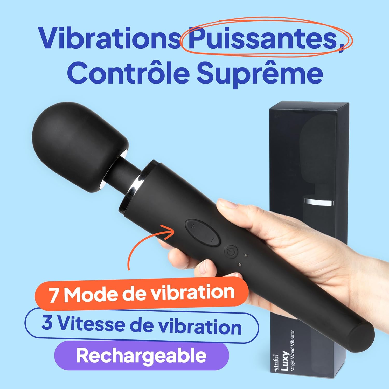 PLAISIR INTENSE GARANTI – Avec le wand vibromasseurs feminin Sinful Luxy, découvrez des vibrations puissantes qui vous mèneront à des orgasmes inoubliables. Parfait pour ceux qui cherchent à allier puissance et élégance, ce magic wand vibromasseur offre 3 vitesses et 7 modes de vibrations pour un plaisir sur mesure.